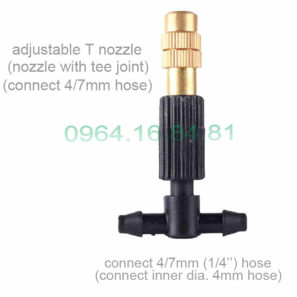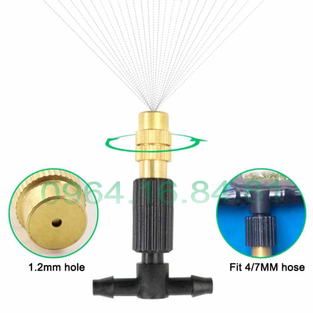 Tên sản phẩm: Bộ Đầu phun đồng phun sương nối tê phi 6 mm