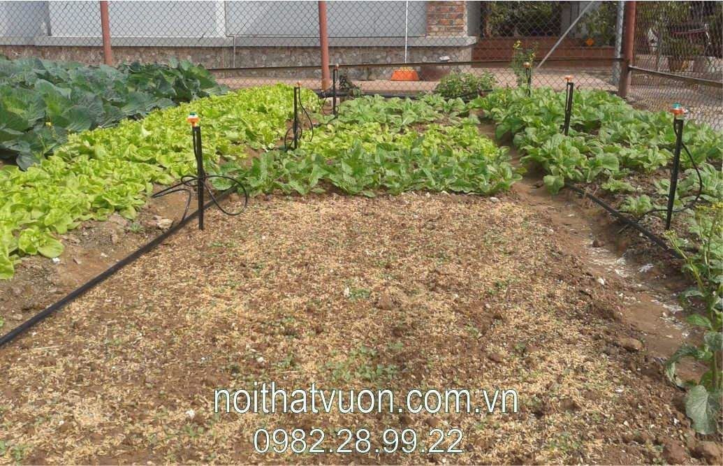 Sau đó noithatvuon đã đến tận nhà Anh Thắng để khảo sát thực tế. Qua khảo sát, noithatvuon nhận thấy khu vườn của anh Thắng là sự kết hợp giữa những loại rau ăn lá và cây hoa cảnh nên đã quyết định lắp hệ thống tưới phun sương kết hợp với tưới nhỏ giọt để đáp ứng cho nhu cầu nước của cây trồng trong vườn.