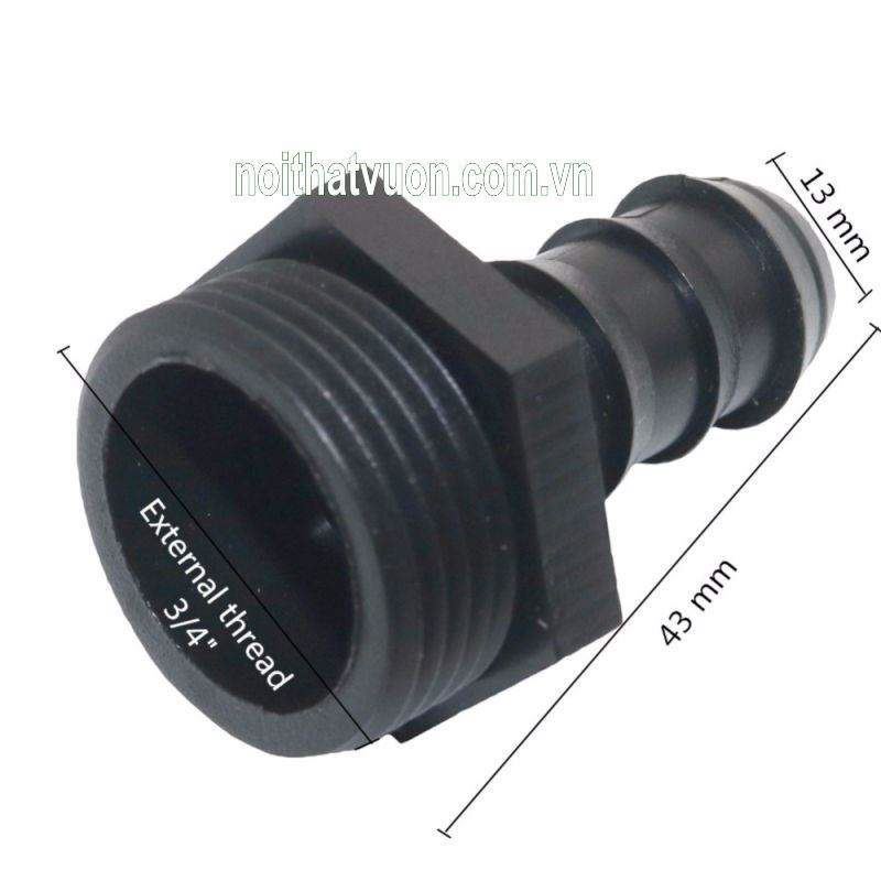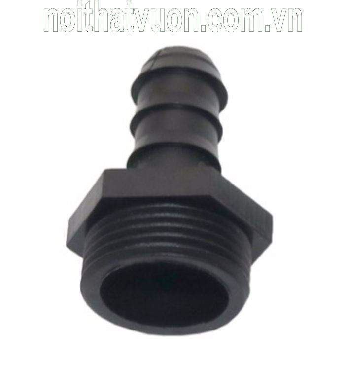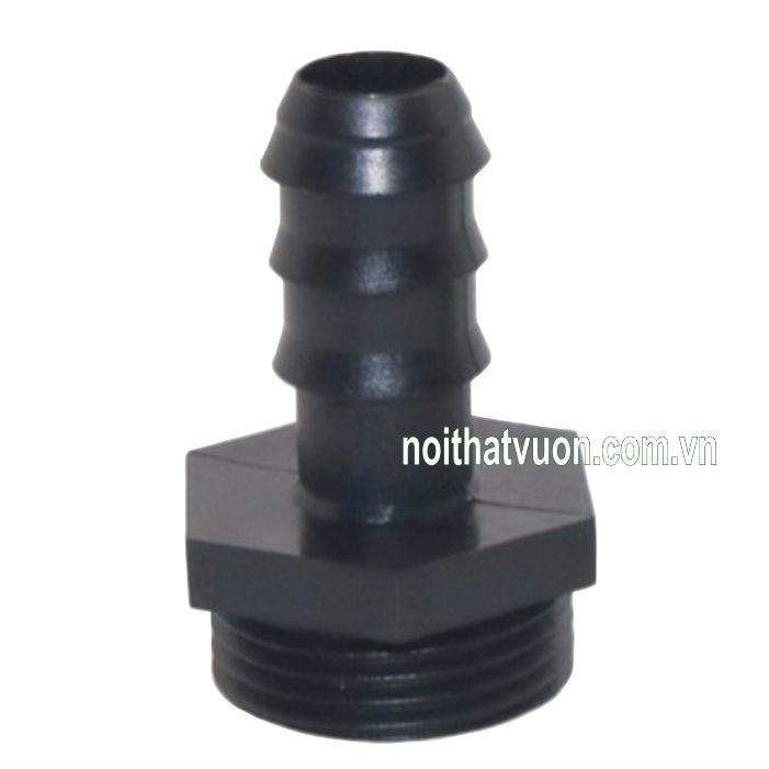 Nối ống nhỏ giọt 16x27mm Dùng để kết nối ống LDPE 16mm với hệ thống đường ống trục dẫn nước PVC, HDPE… thông qua ren ngoài 27mm trong hệ thống đường ống trục chính dẫn nước có các đầu chờ ren trong 27mm.