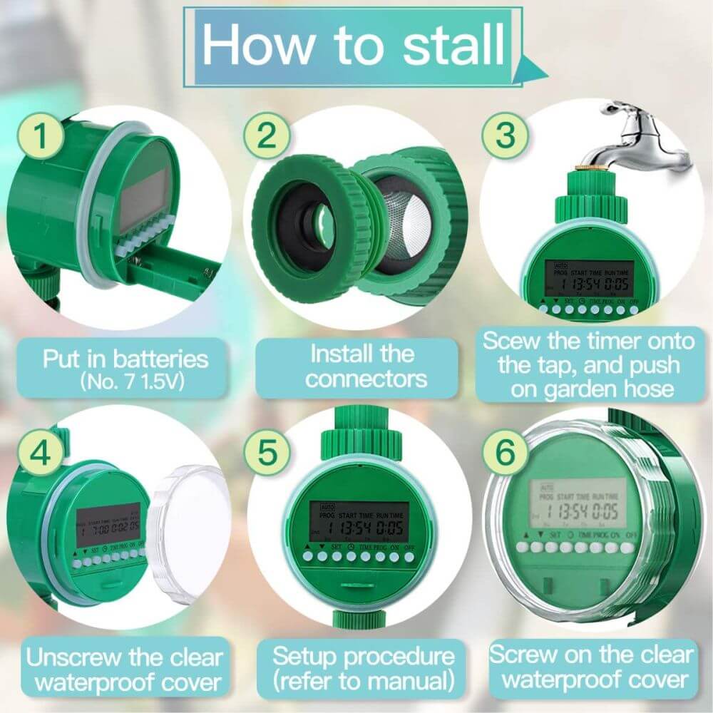 Lưu ý: Thời gian chạy là khoảng thời gian: từ một phút đến 9 giờ và năm mươi chín phút. Ví dụ: nếu bạn muốn tưới 5 phút, bạn chỉ cần đặt 0:05. nhấn nút “SET” để xác nhận.