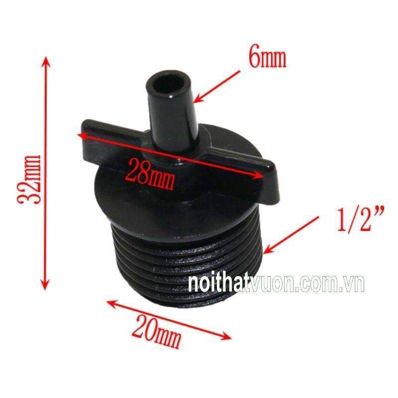 đầu nối béc phun sương đầu phi 6 và ren ngoài phi 21
