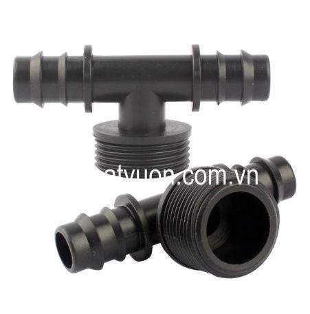 Tê Thu 27 – 16 Là phụ kiện dùng để rẽ nhánh từ 27 sang phần ống mềm 16 mm trong hệ tưới nhỏ giọt. Gồm kết nối 02 đầu đều liên kết dạng khớp 16mm (đường kính ngoài 16mm, đường kính trong 14mm) , đầu còn lại liên kết ren ngoài 27 mm.