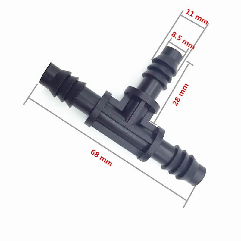 Dùng để liên kết ống tưới nhỏ giọt 10mm, 11mm, 12mm trong tưới nhỏ giọt, chia đường nhánh đường nước tưới cho hệ thống tưới bằng ống mềm.