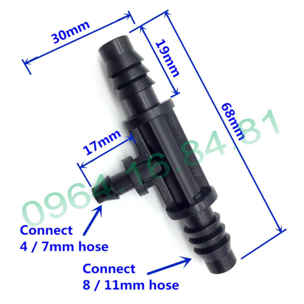 – Đầu khớp chuyển nhỏ để nối với ống ống nhỏ giọt 4/7mm (hoặc 4/6mm) chia nhánh tưới ra vòi tưới. Các đầu vòi tưới ta có thể dùng vòi phun sương hoặc vòi nhỏ giọt tùy theo nhu cầu sử dụng và phù hợp với áp lực máy bơm, và lưu lượng nước.