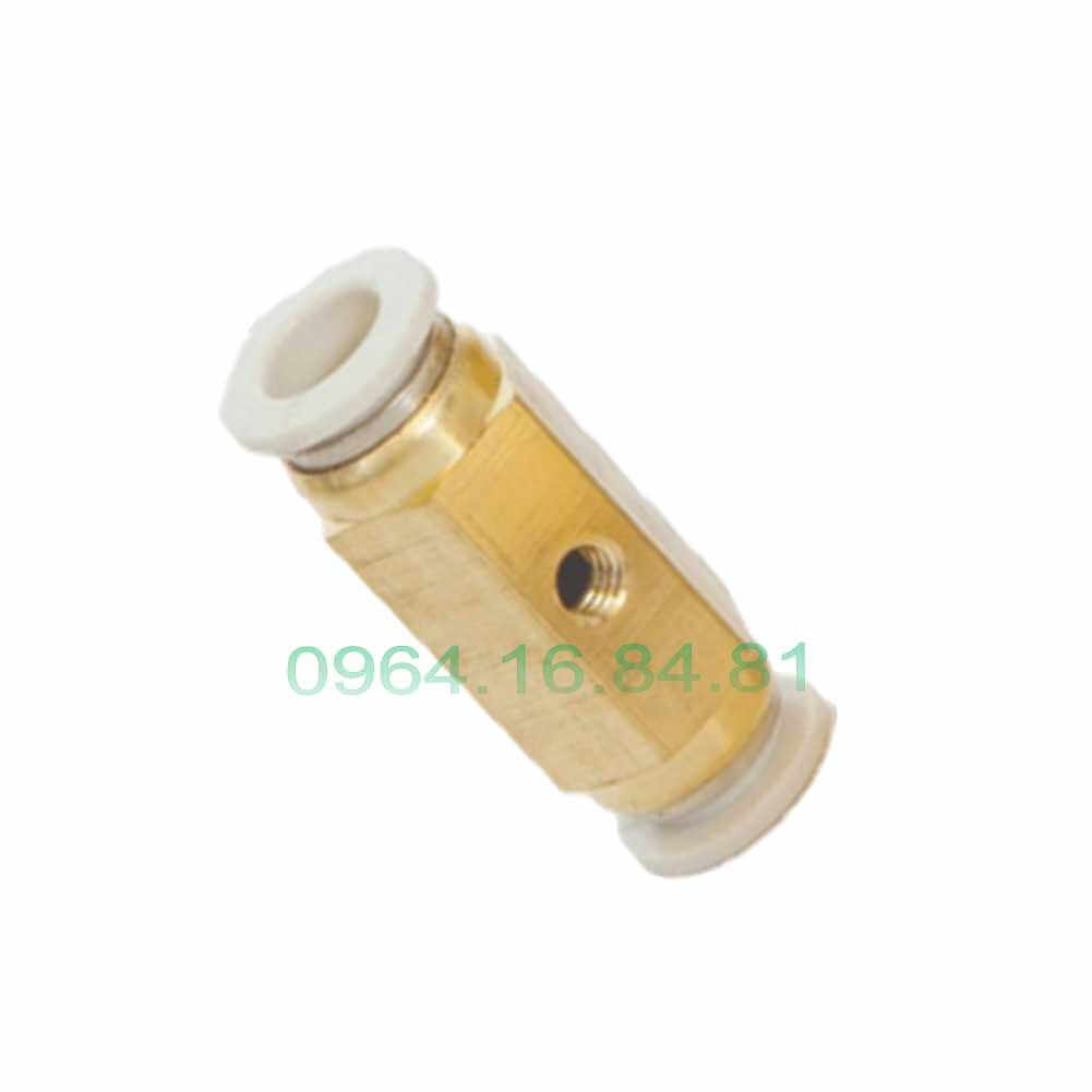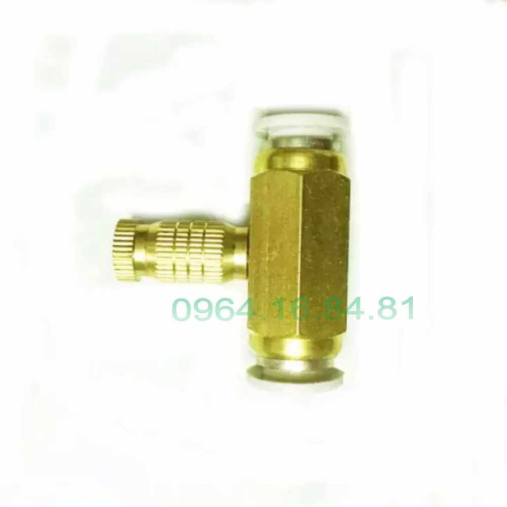 Thân nối đầu phun sương ( Đế gắn đầu phun) – Chân đế dùng để nối 2 đầu dây phun sương 8mm và giữa thân là ren trong 3mm để gắn đầu béc phun sương đồng.