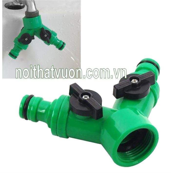 Chuyển đổi đường nước thành 2 đầu nước ra, Có van điều khiển nước tại mỗi đầu ra, gioăng cao su chống rò,Thiết kế 01 lỗ vít bằng nhựa để đảm bảo cố định cho van đầu ra